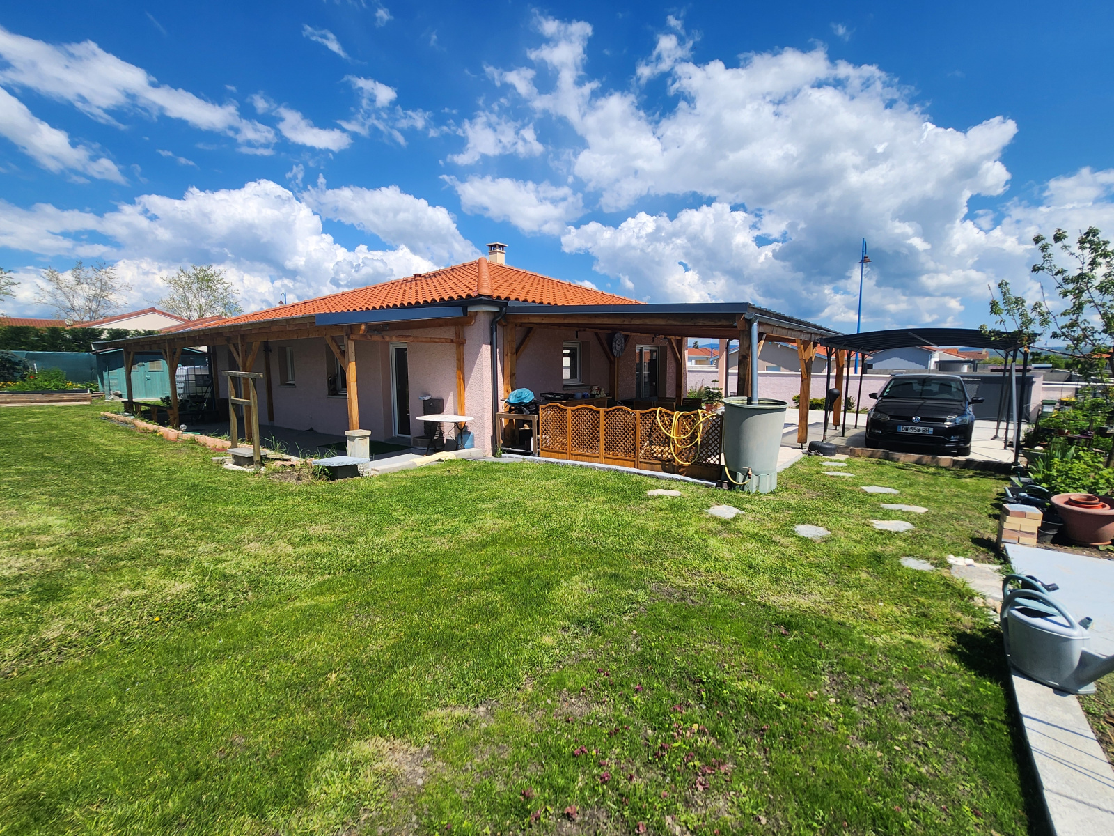 Dépendances : Carport, abri de jardin, Terrasse de 32m² et préau de 25m²